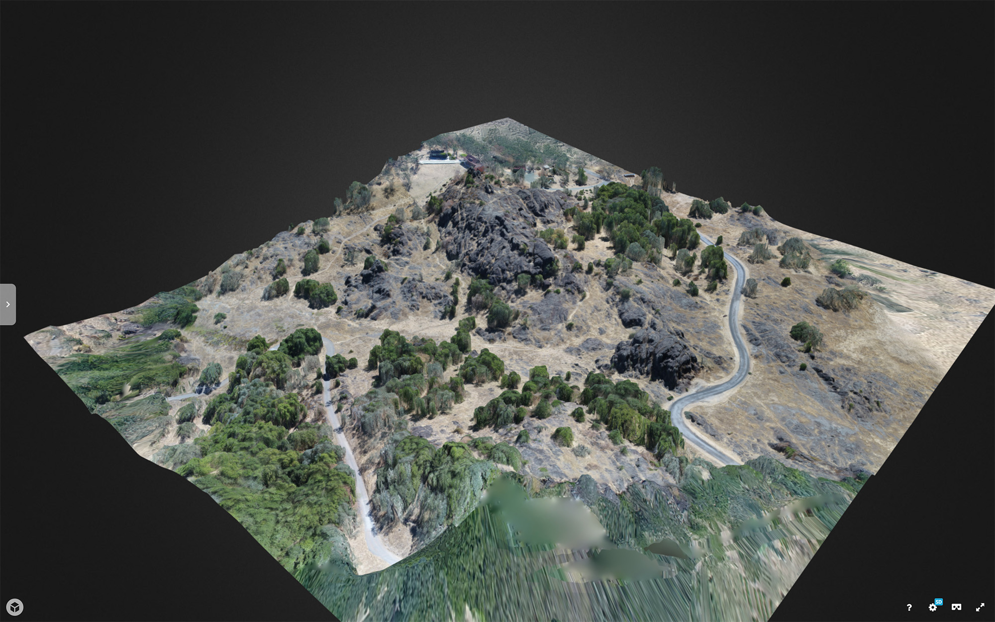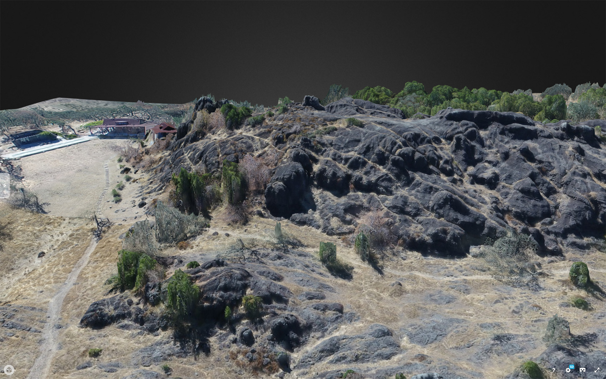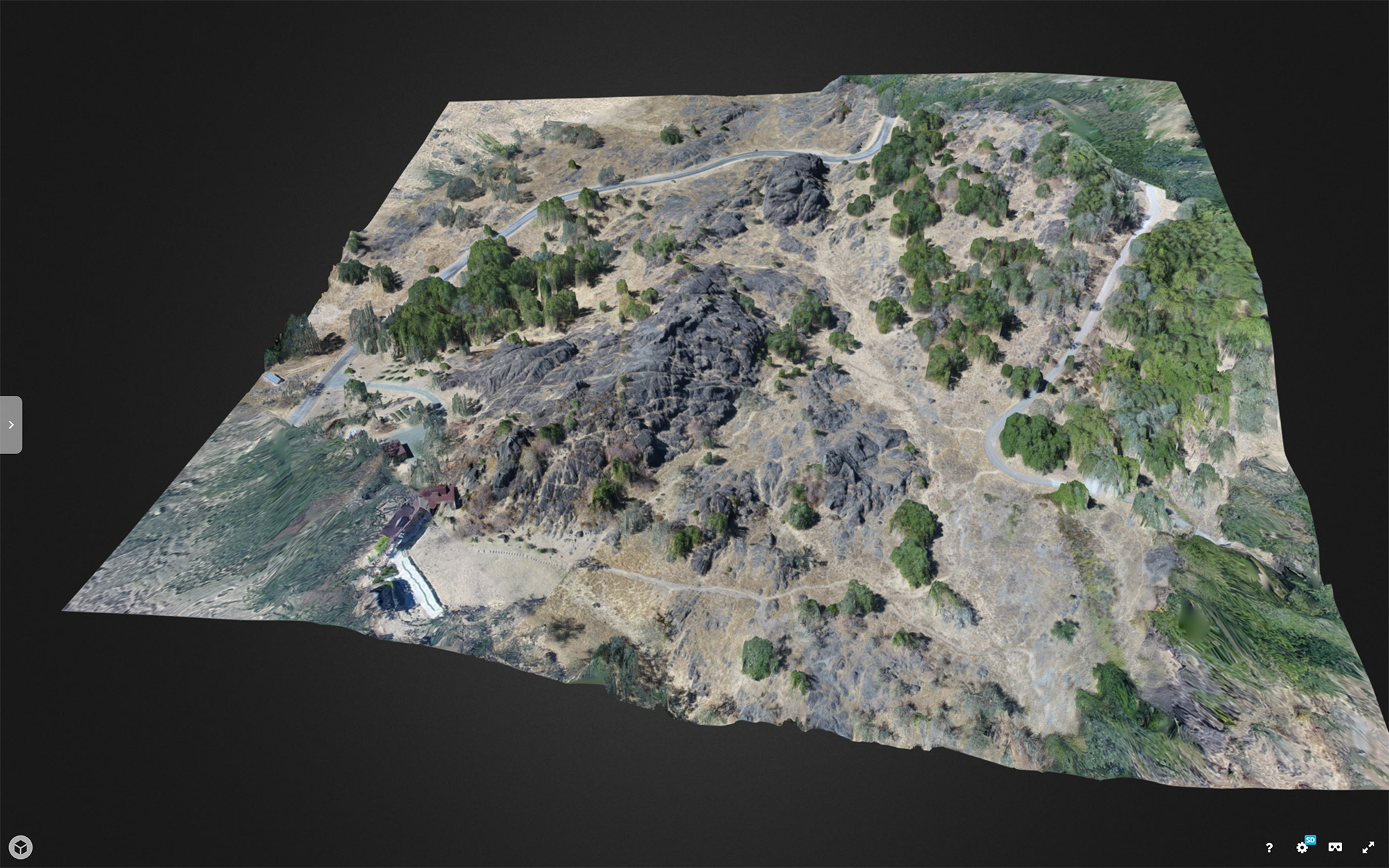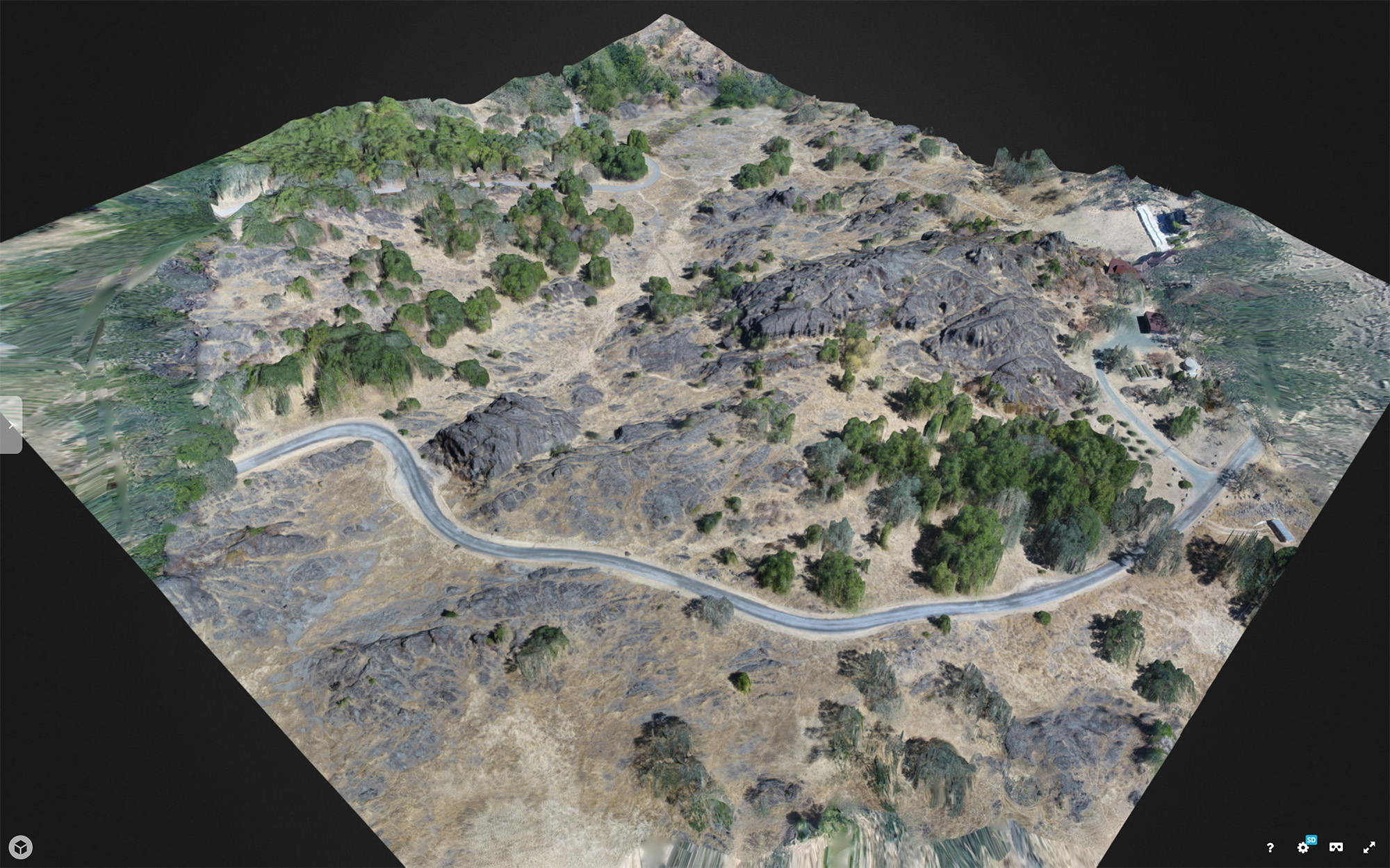 Screenshots of the Virtual 3D model created using 208 aerial images of the terrain. The images were then uploaded to DroneDeploy and stitched together into a virtual 3D model which can be manipulated in 3 dimensional space in real time. It's possible to zoom, pan, tilt and rotate the image in any direction or from any angle. While the imagery is not photo realistic, it is a very good representation of the property and provides the viewer with a means to look at the property using perspectives that would be virtually impossible with 2 dimensional photographic images only.