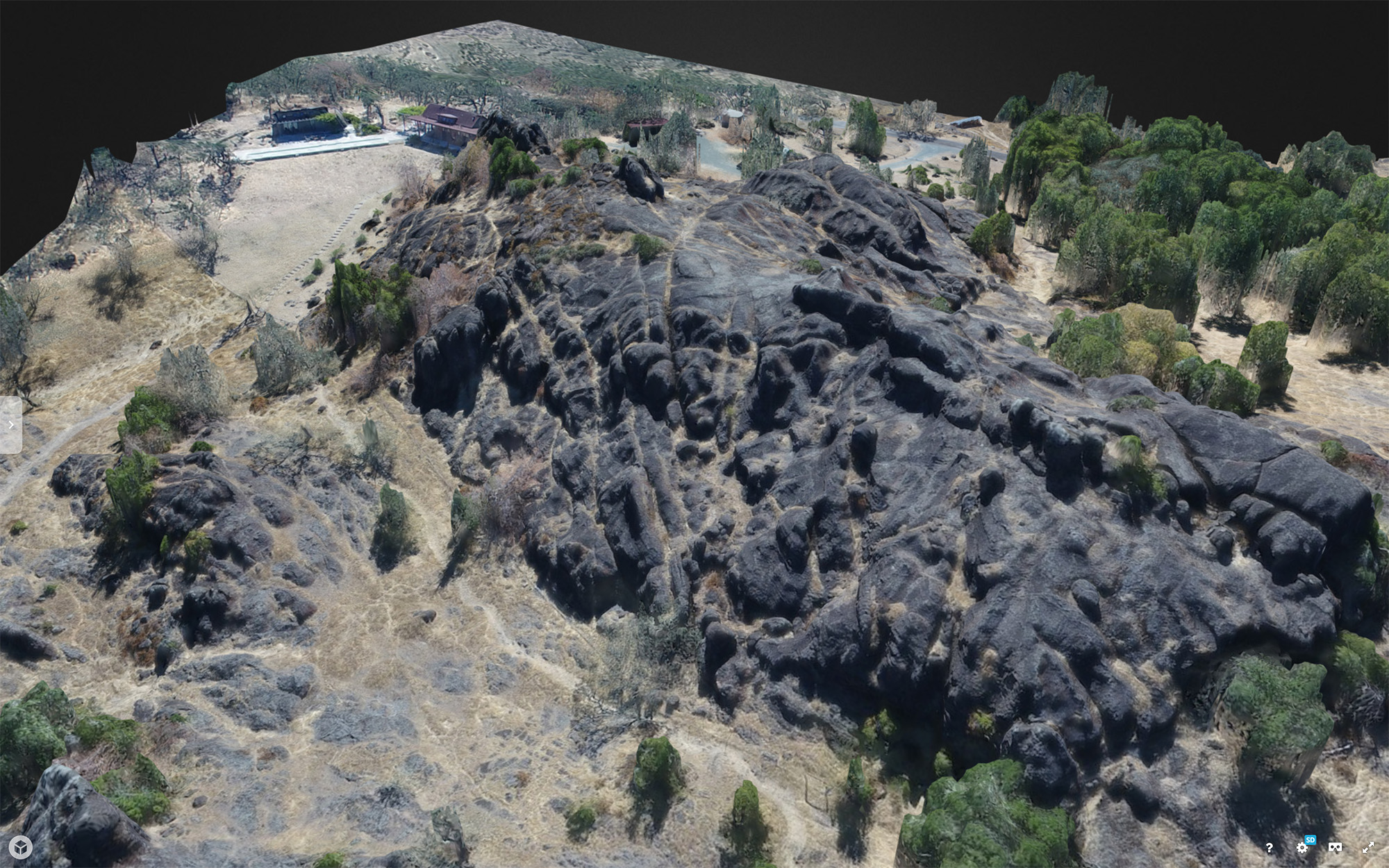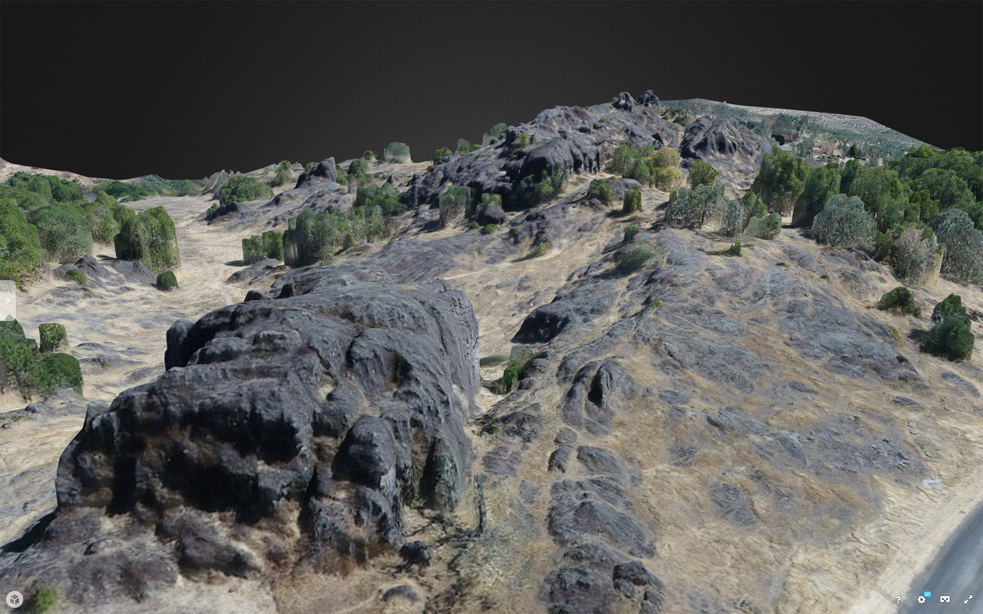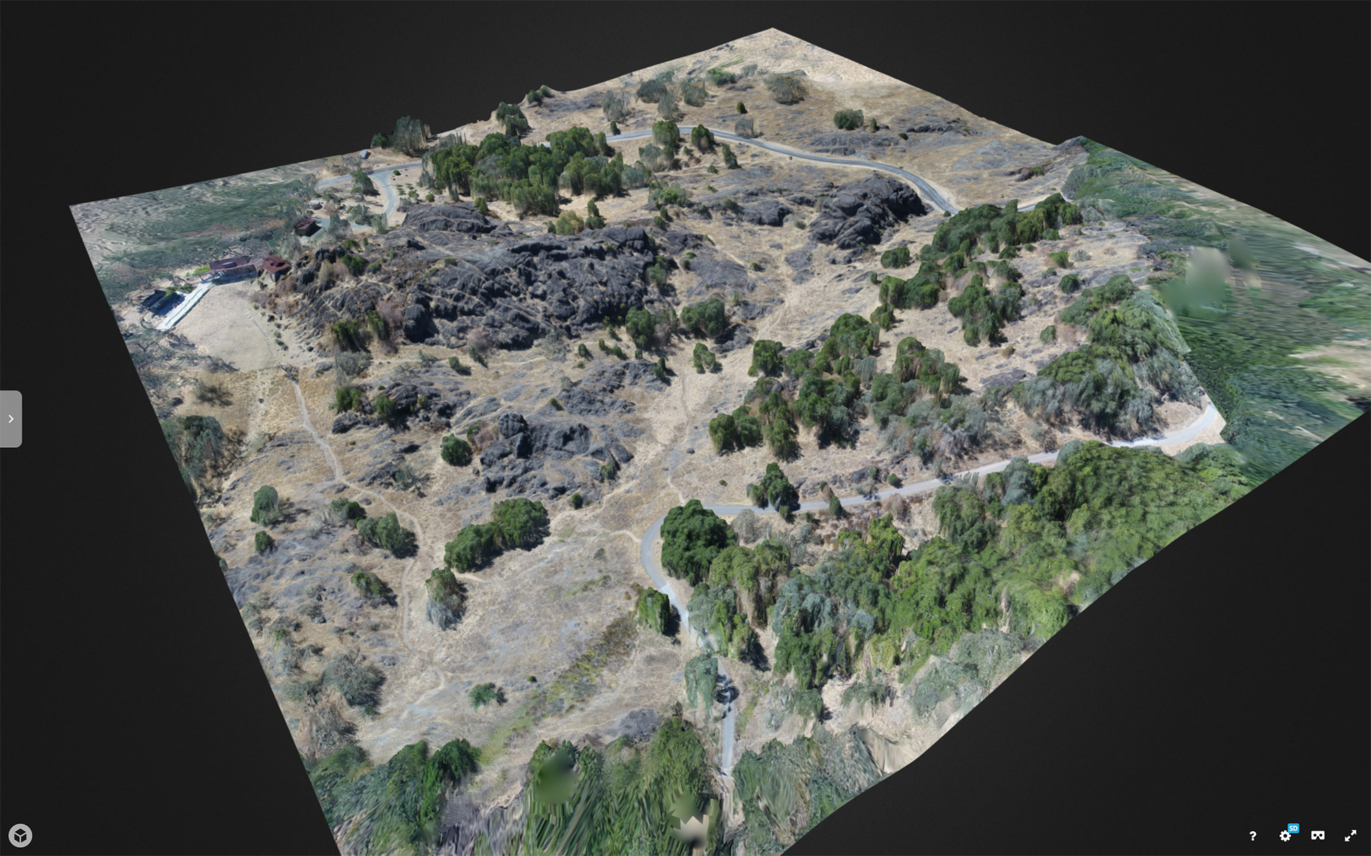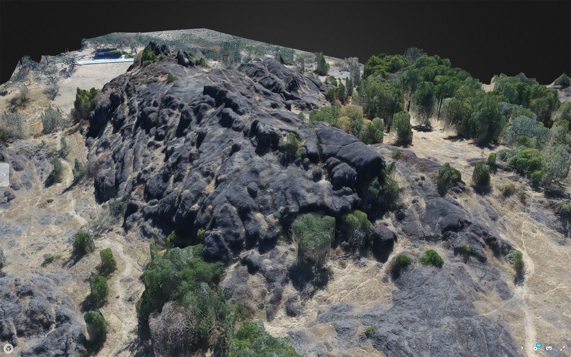Screenshots of the Virtual 3D model created using 208 aerial images of the terrain. The images were then uploaded to DroneDeploy and stitched together into a virtual 3D model which can be manipulated in 3 dimensional space in real time. It's possible to zoom, pan, tilt and rotate the image in any direction or from any angle. While the imagery is not photo realistic, it is a very good representation of the property and provides the viewer with a means to look at the property using perspectives that would be virtually impossible with 2 dimensional photographic images only.