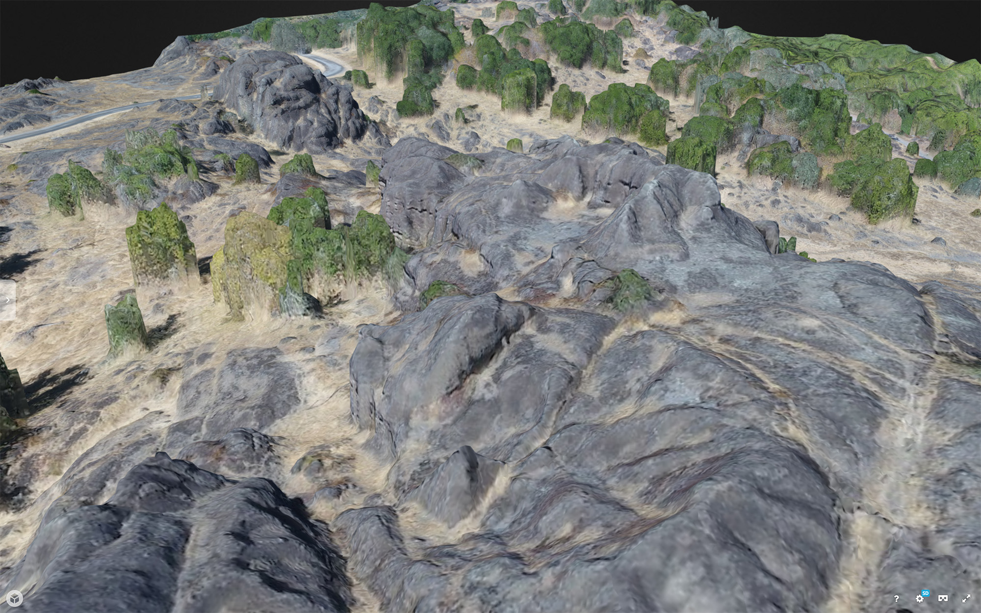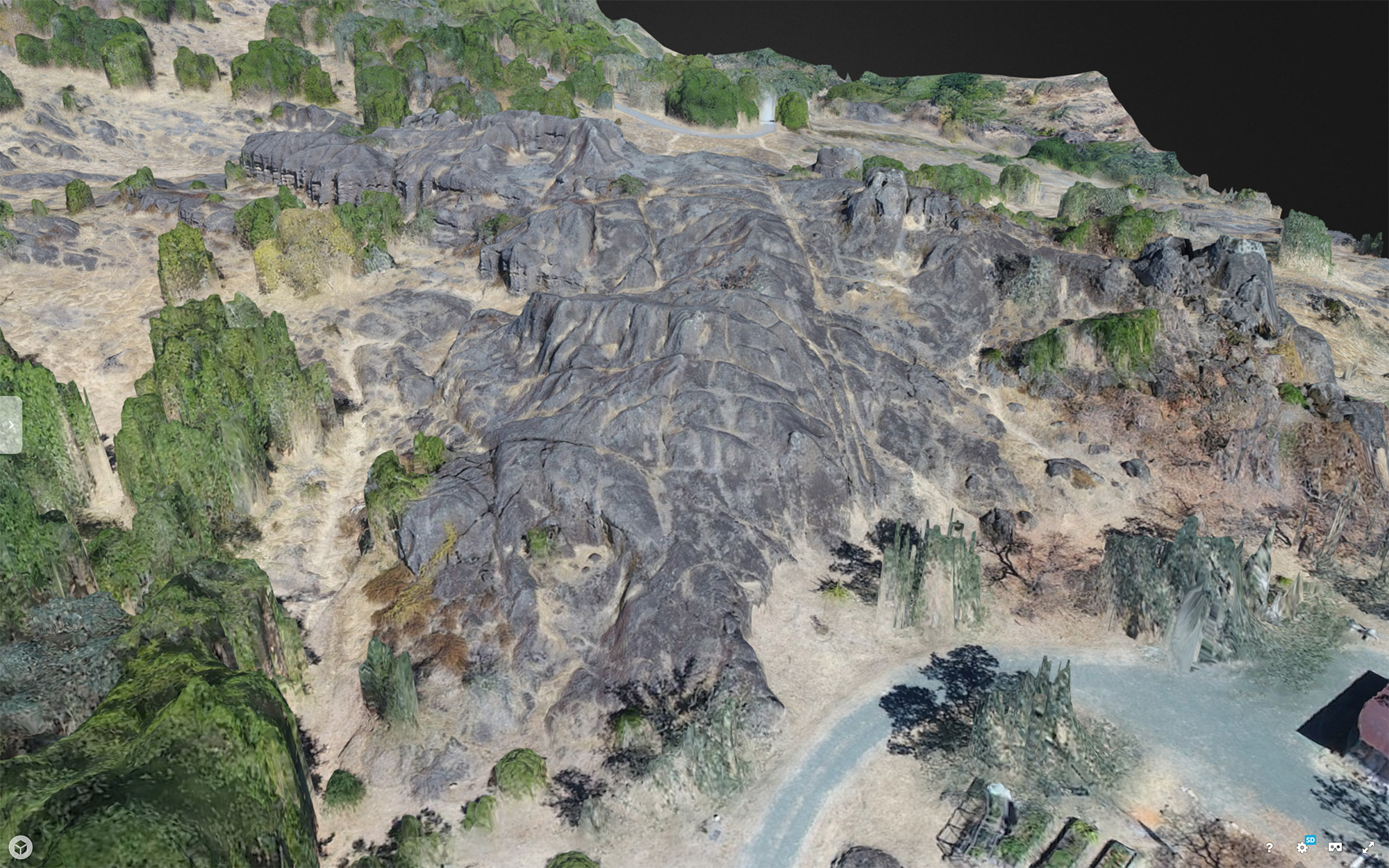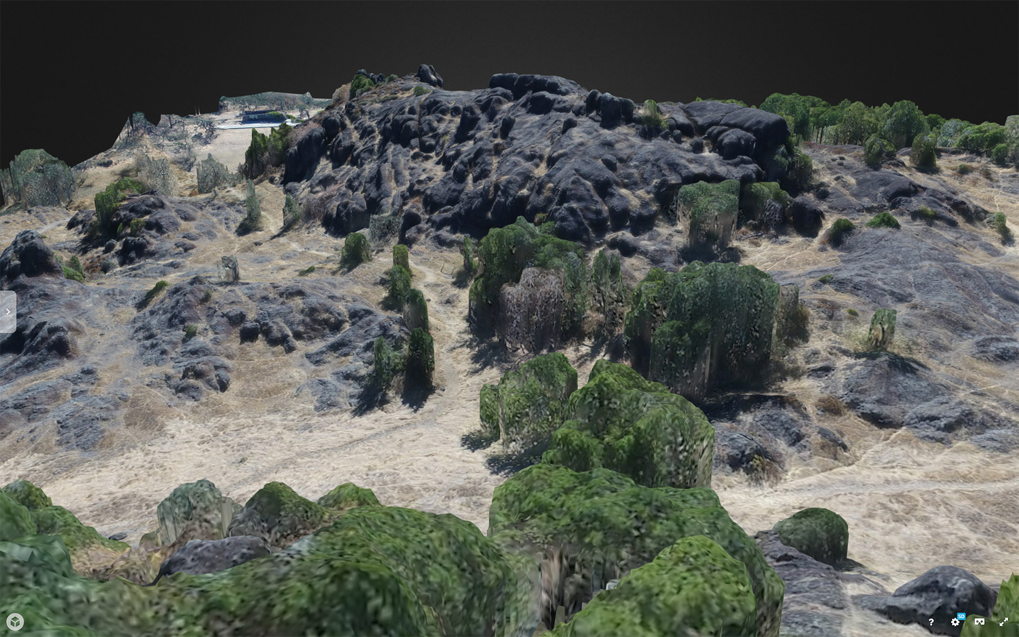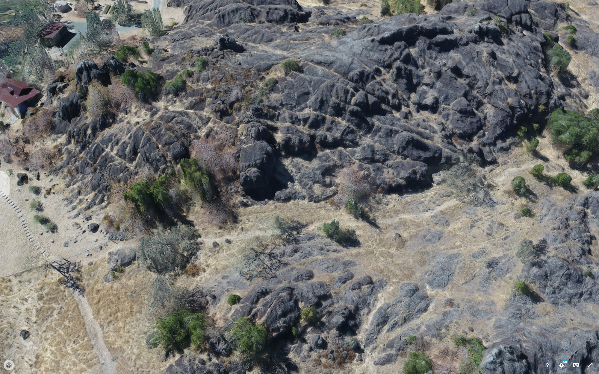 Screenshots of the Virtual 3D model created using 208 aerial images of the terrain. The images were then uploaded to DroneDeploy and stitched together into a virtual 3D model which can be manipulated in 3 dimensional space in real time. It's possible to zoom, pan, tilt and rotate the image in any direction or from any angle. While the imagery is not photo realistic, it is a very good representation of the property and provides the viewer with a means to look at the property using perspectives that would be virtually impossible with 2 dimensional photographic images only.