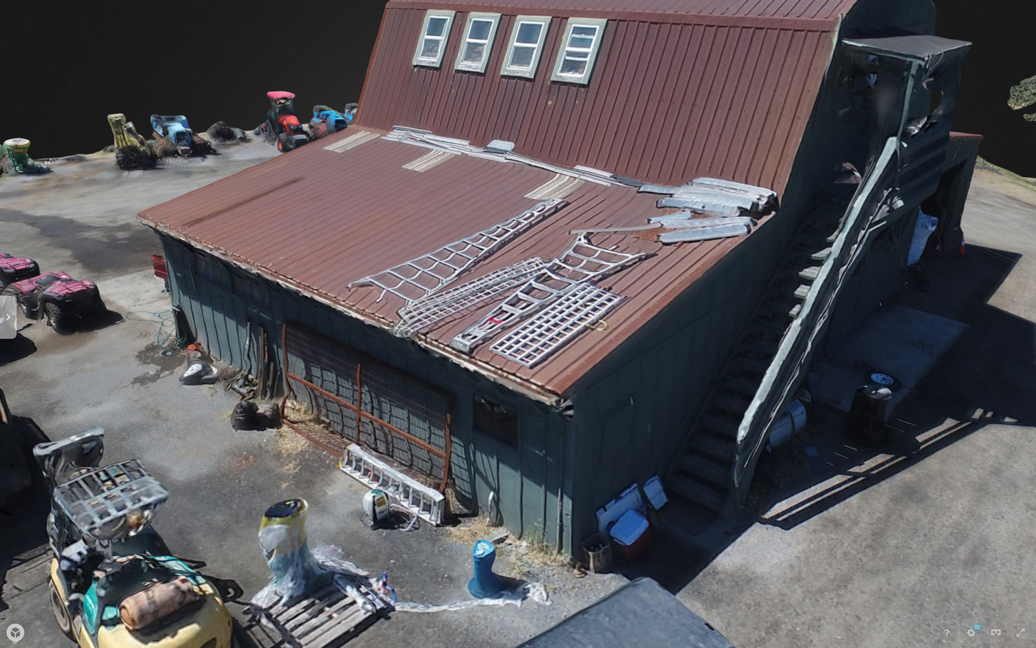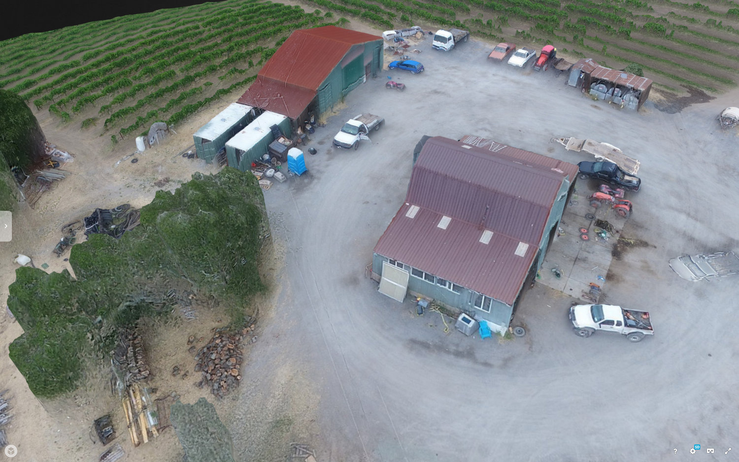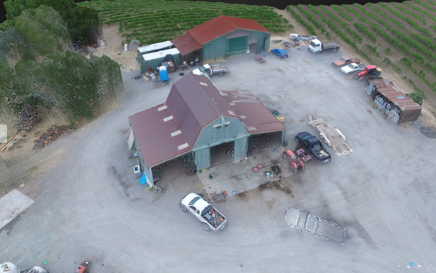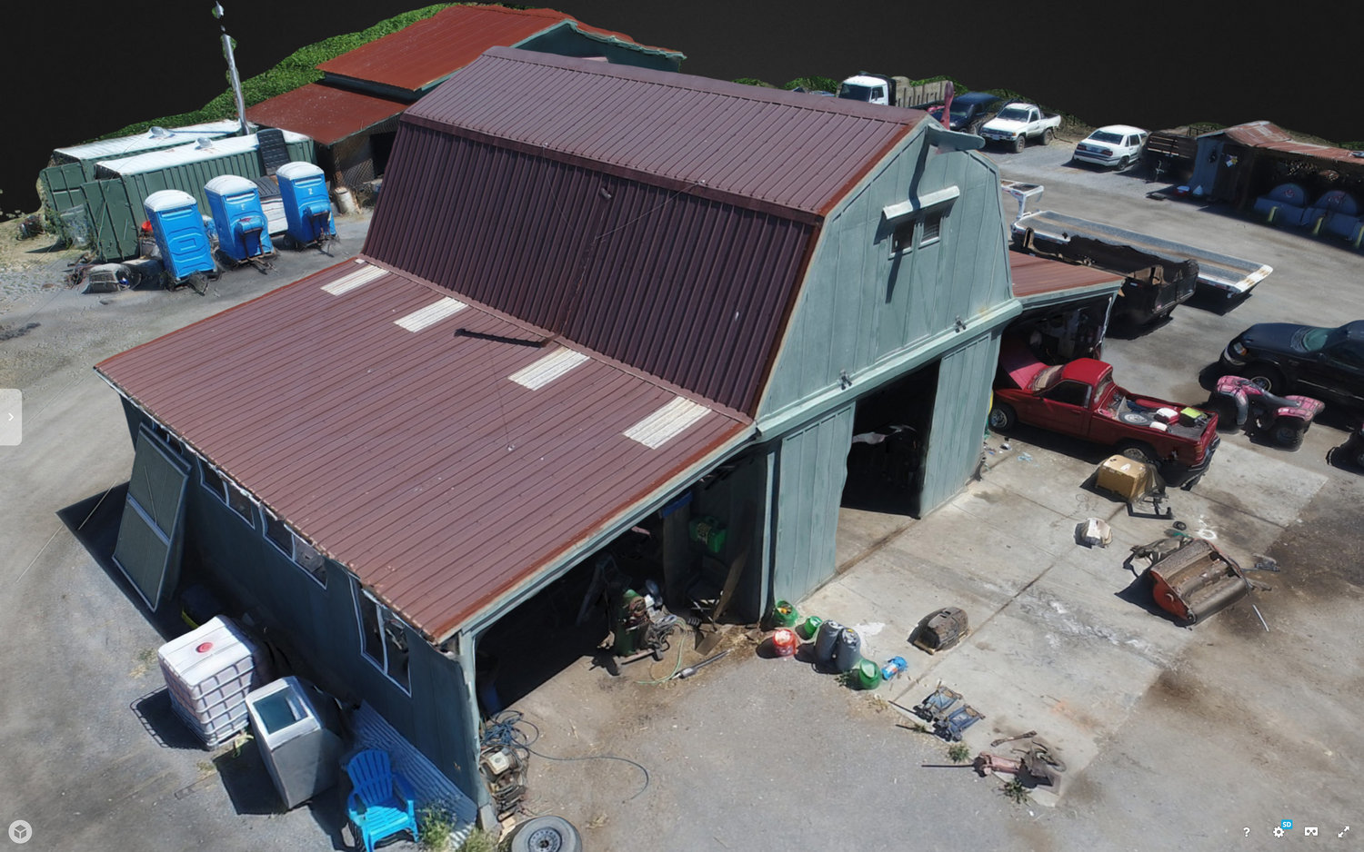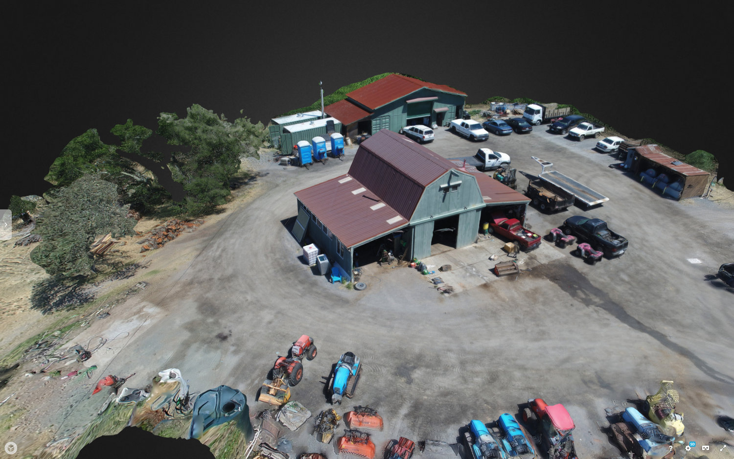 Screenshots captured from a 3D virtual model of a barn created using aerial imagery from our Phantom 4 Pro. The images are then uploaded to DroneDeploy and turned into a 3D model which can be manipulated in real time, including Zoom, title, and rotate. Click here to view and manipulate the virtual 3D model.