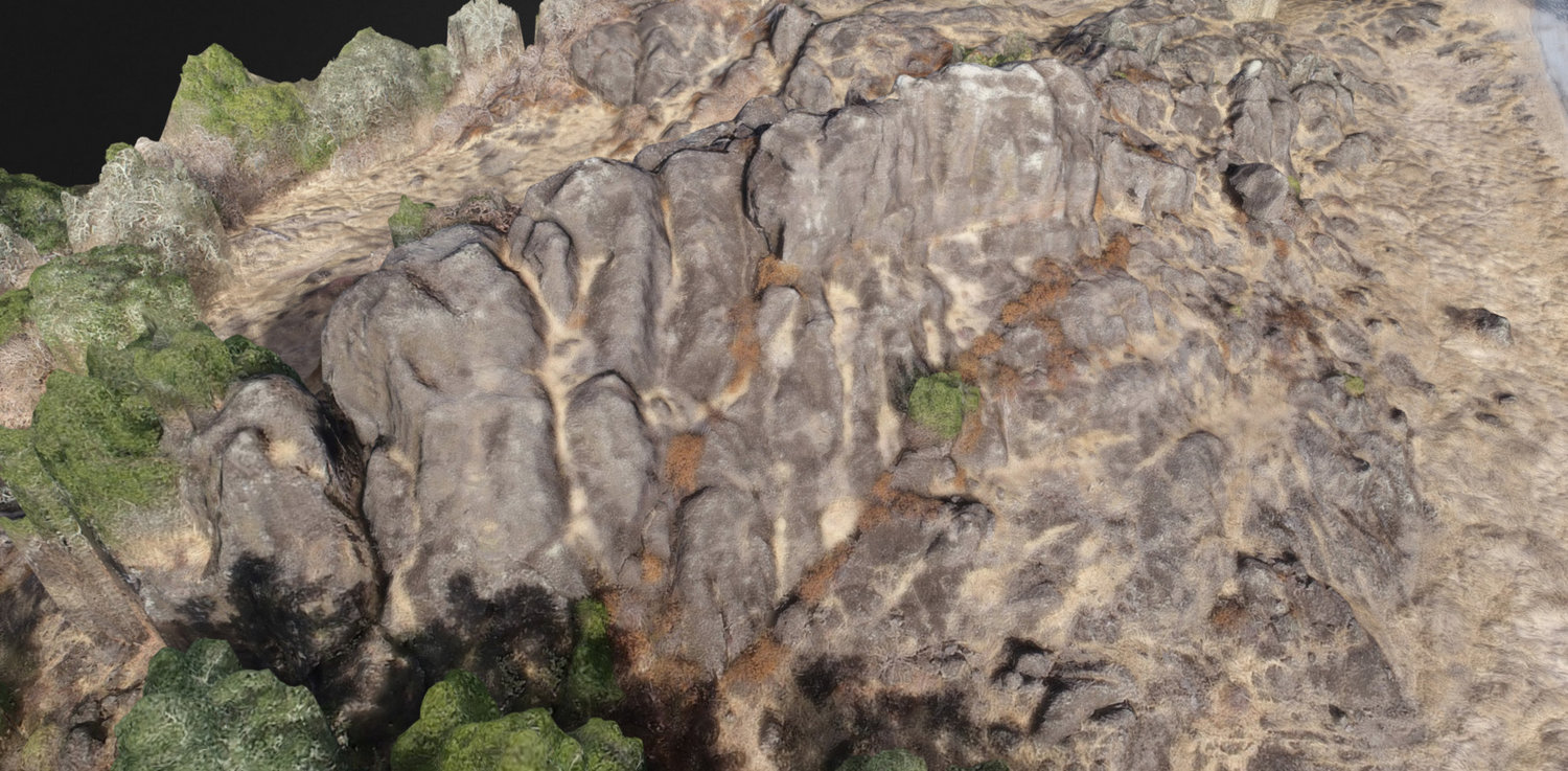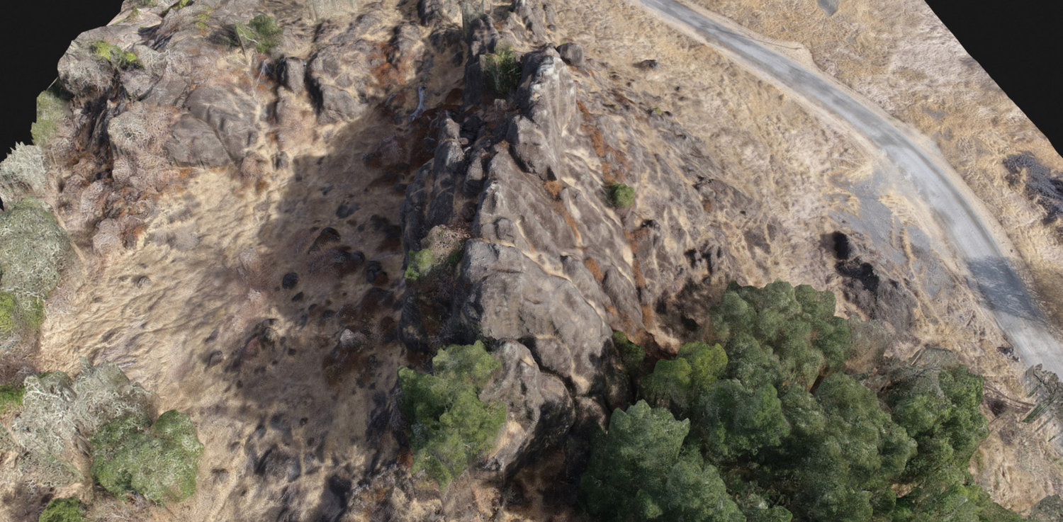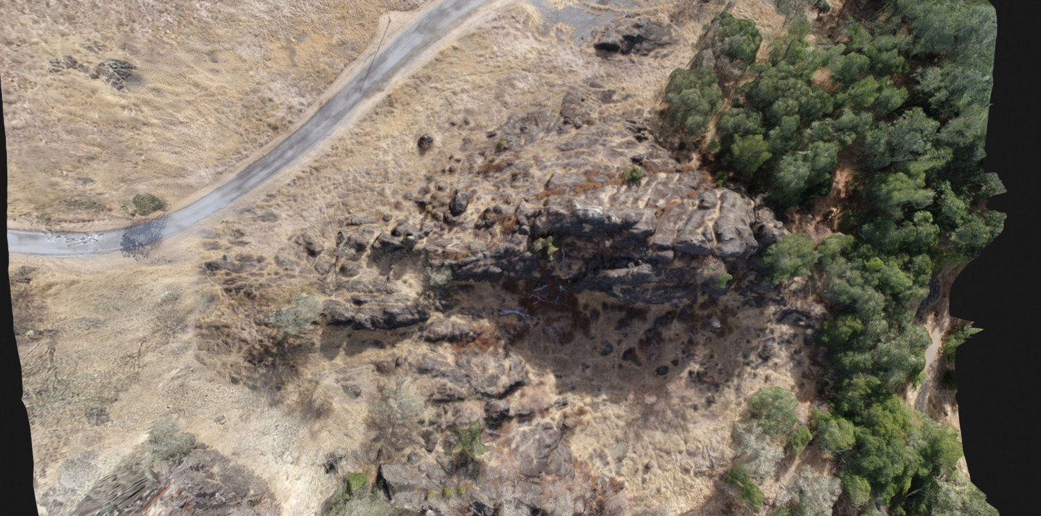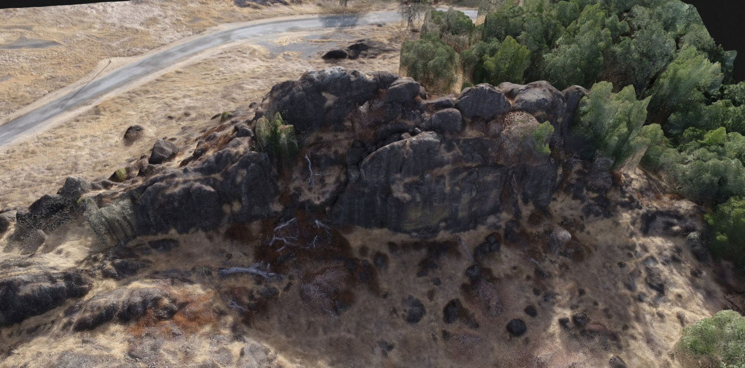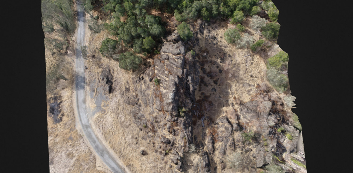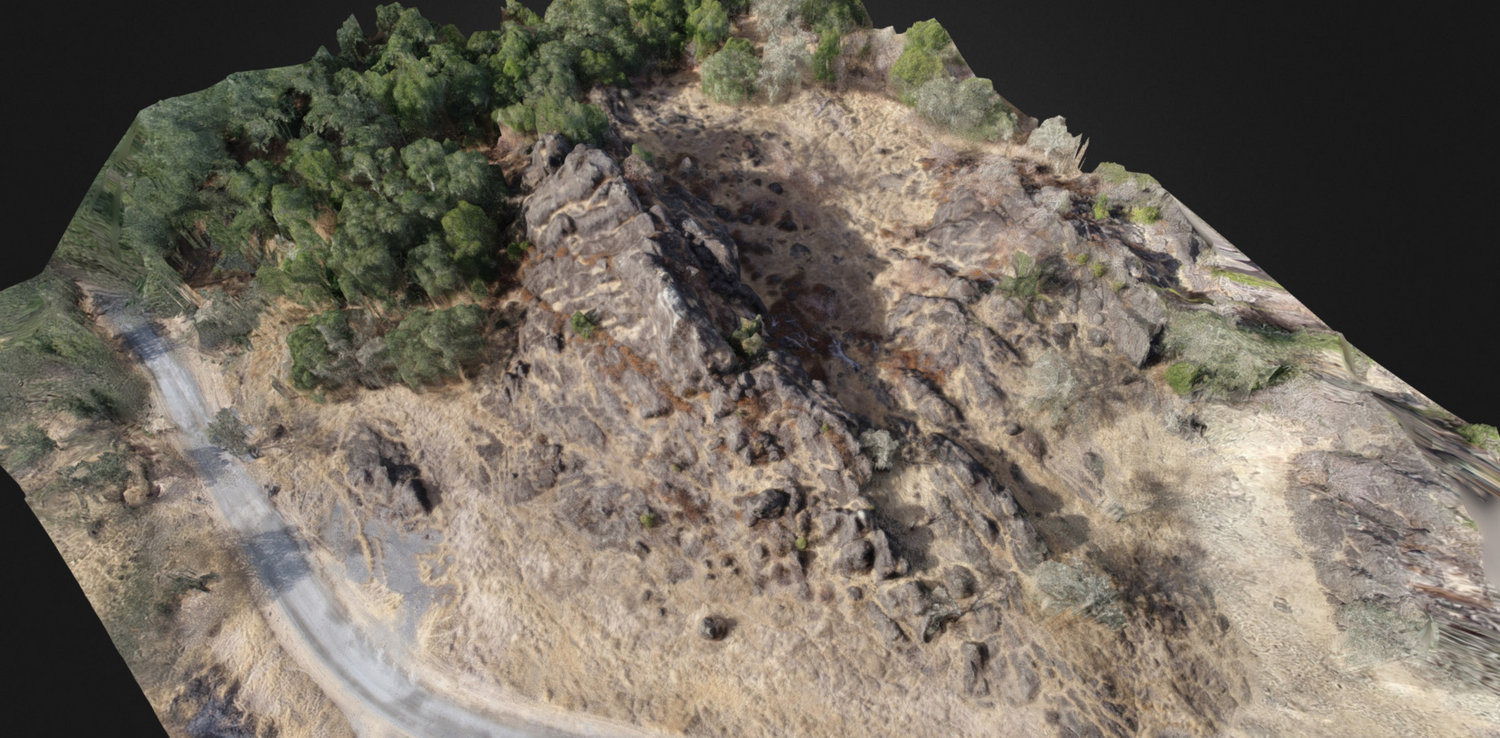 Screenshots captured from a 3D virtual model of a rock formation created using aerial imagery from our Phantom 4 Pro. The images are then uploaded to DroneDeploy and turned into a 3D model which can be manipulated in real time, including Zoom, title, and rotate.