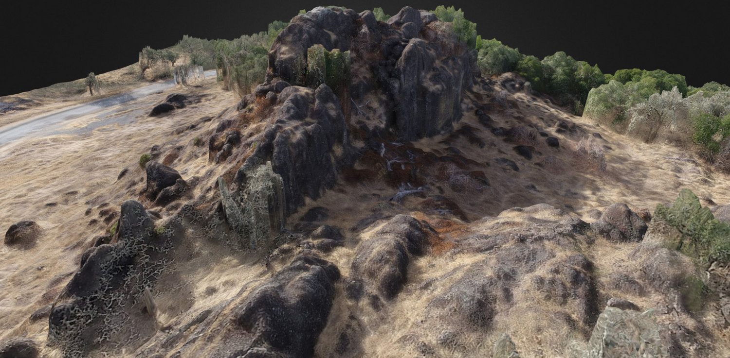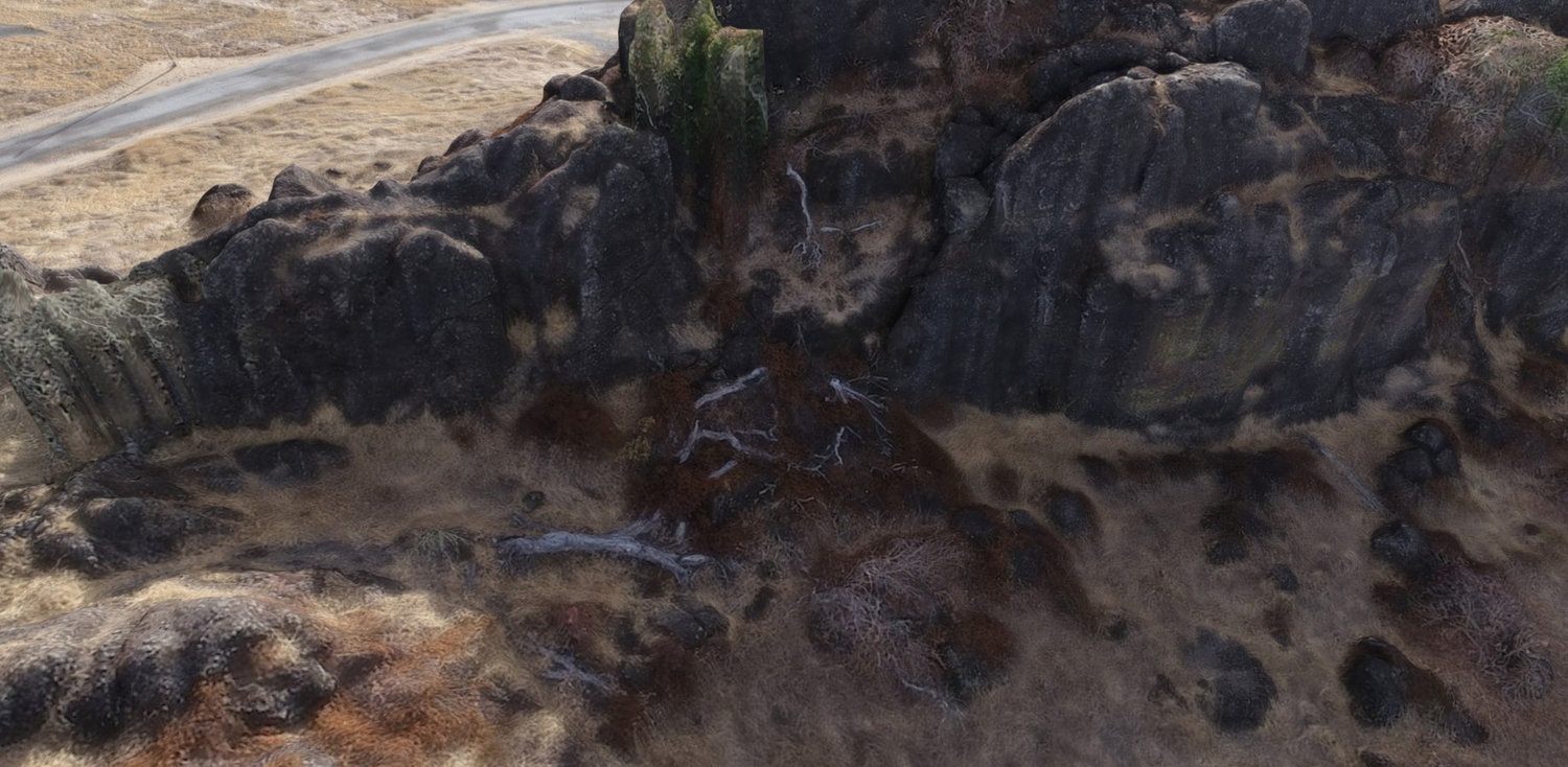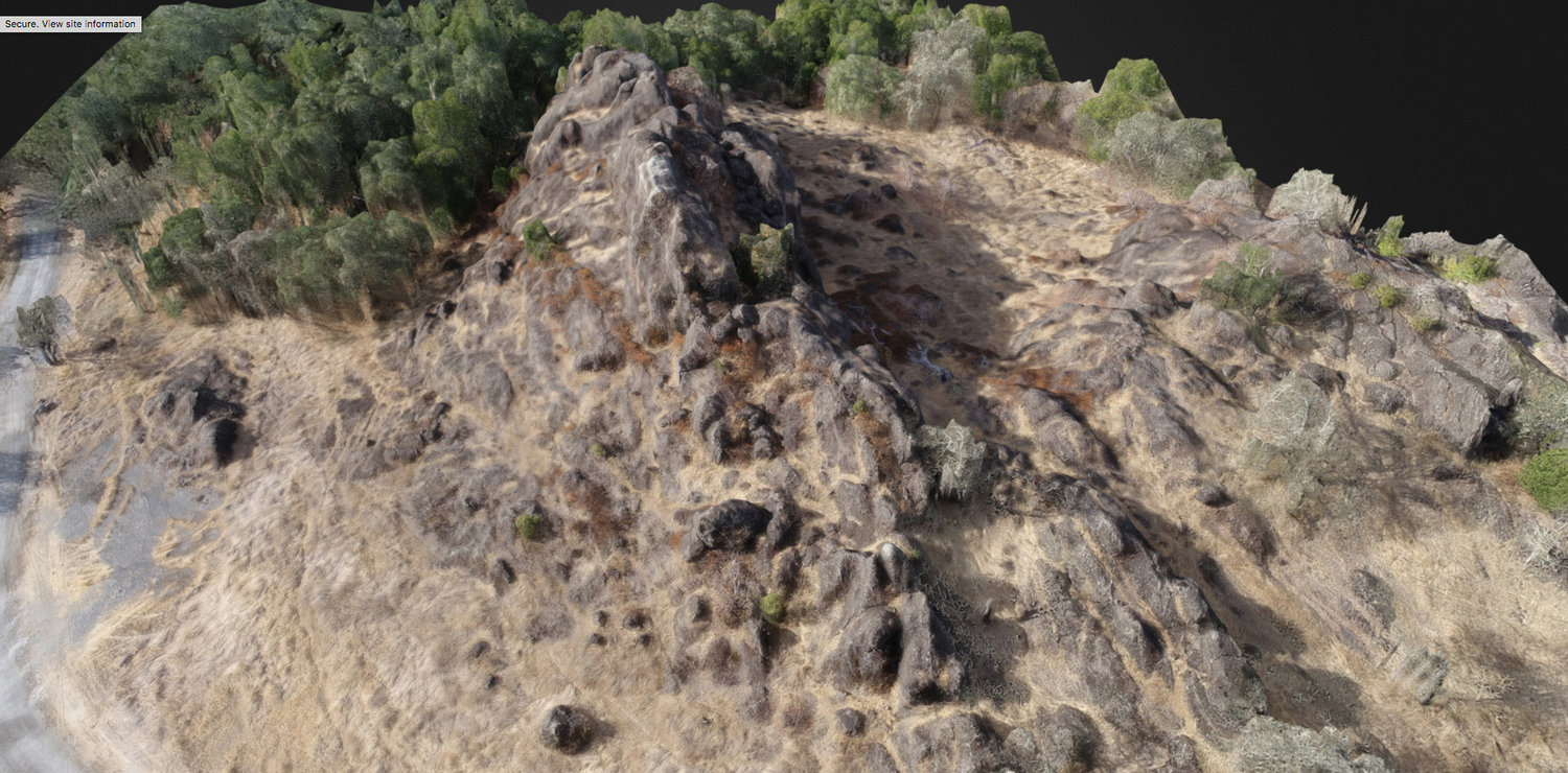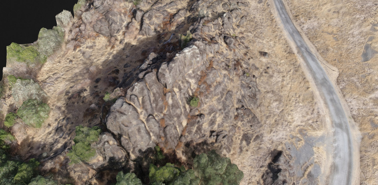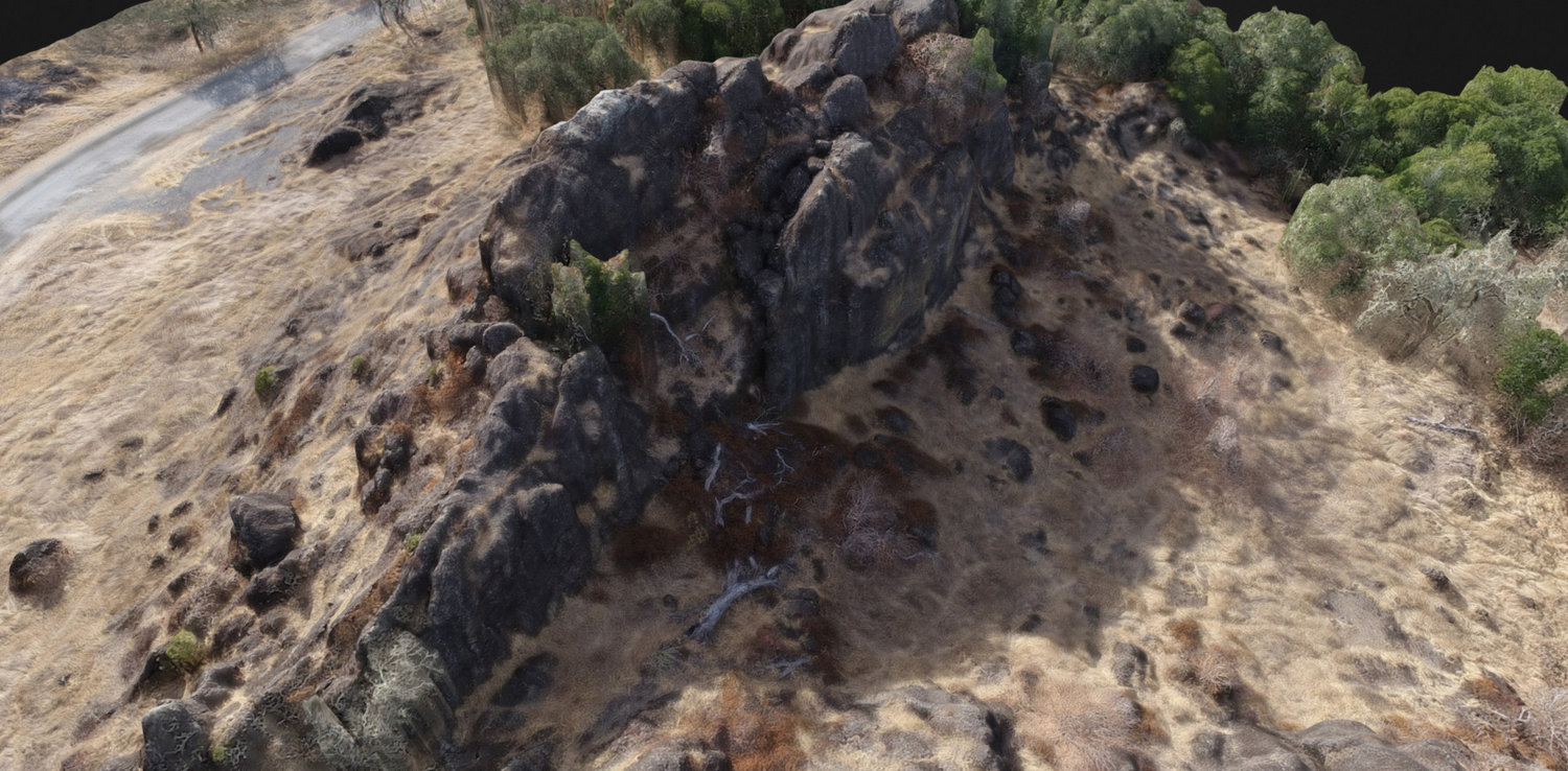 Screenshots captured from a 3D virtual model of a rock formation created using aerial imagery from our Phantom 4 Pro. The images are then uploaded to DroneDeploy and turned into a 3D model which can be manipulated in real time, including Zoom, title, and rotate.