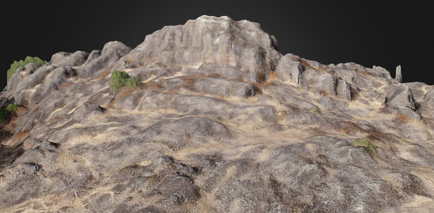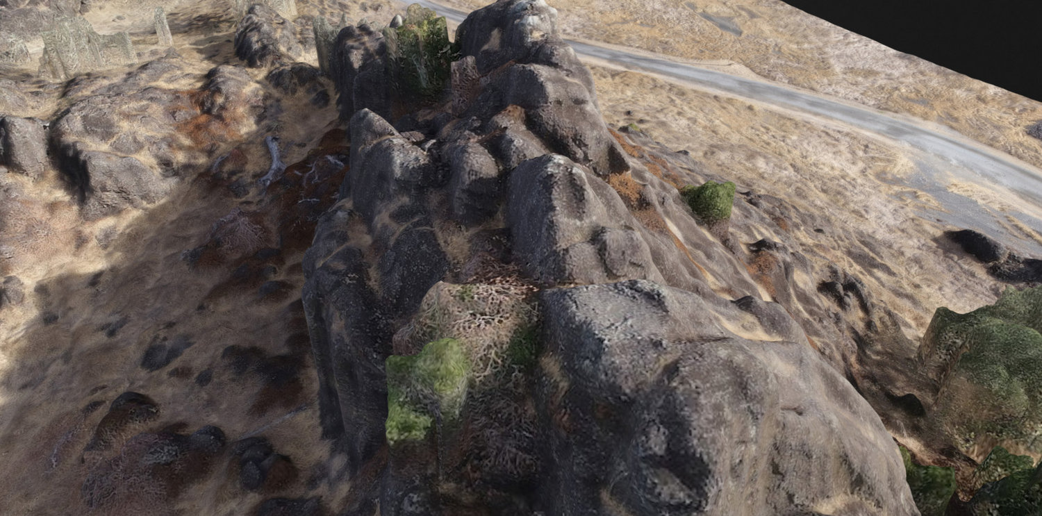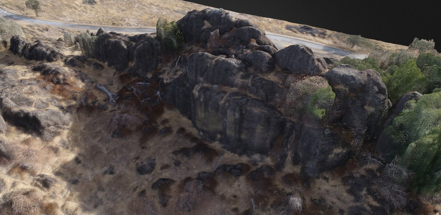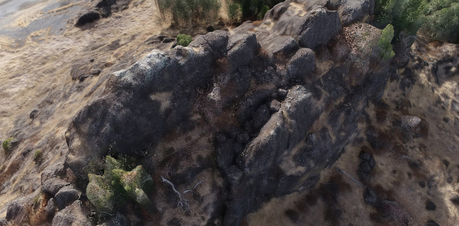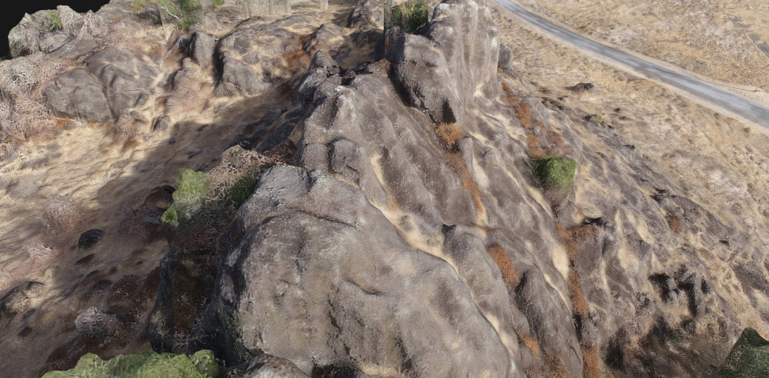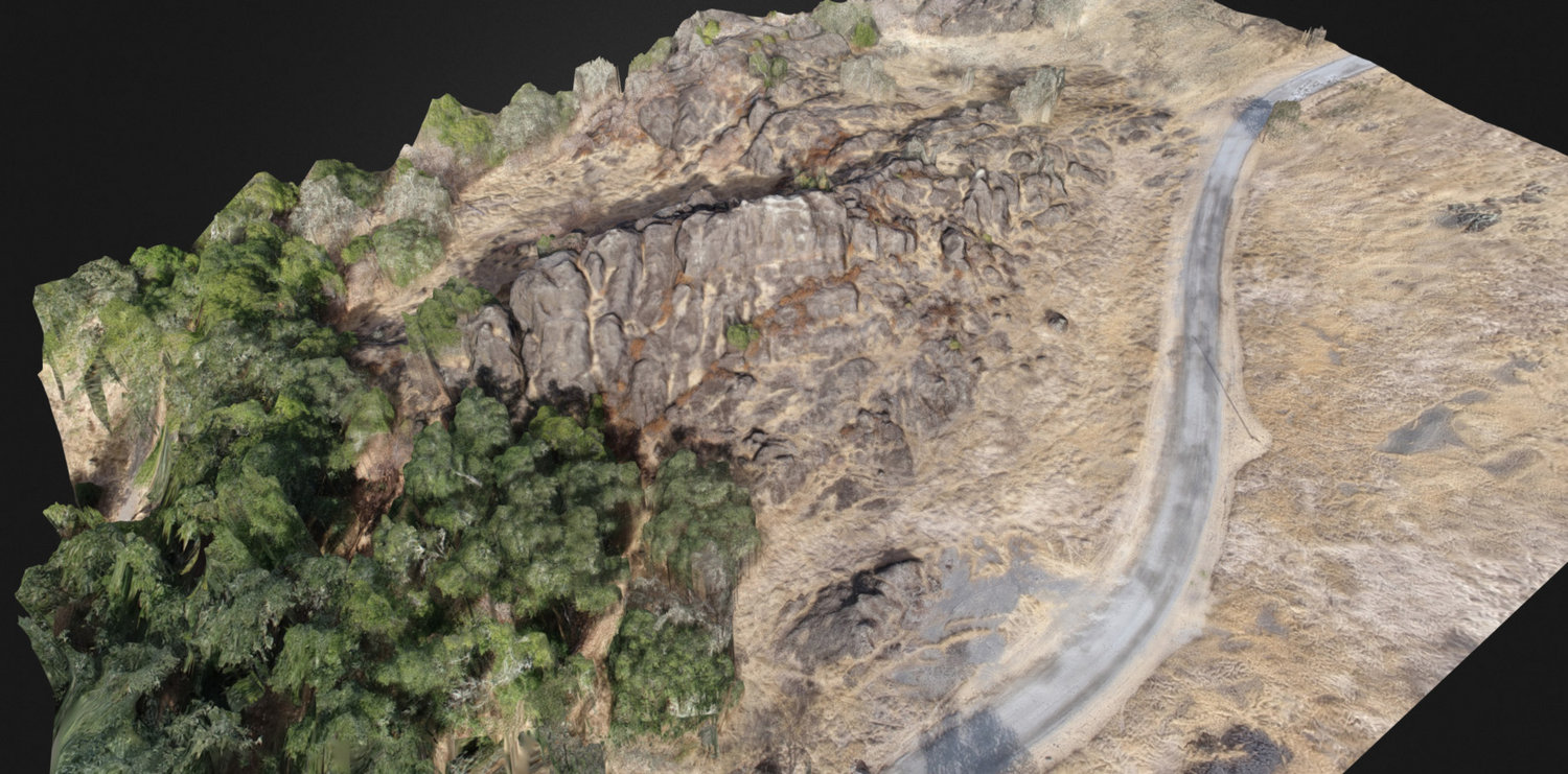 Screenshots captured from a 3D virtual model of a rock formation created using aerial imagery from our Phantom 4 Pro. The images are then uploaded to DroneDeploy and turned into a 3D model which can be manipulated in real time, including Zoom, title, and rotate.