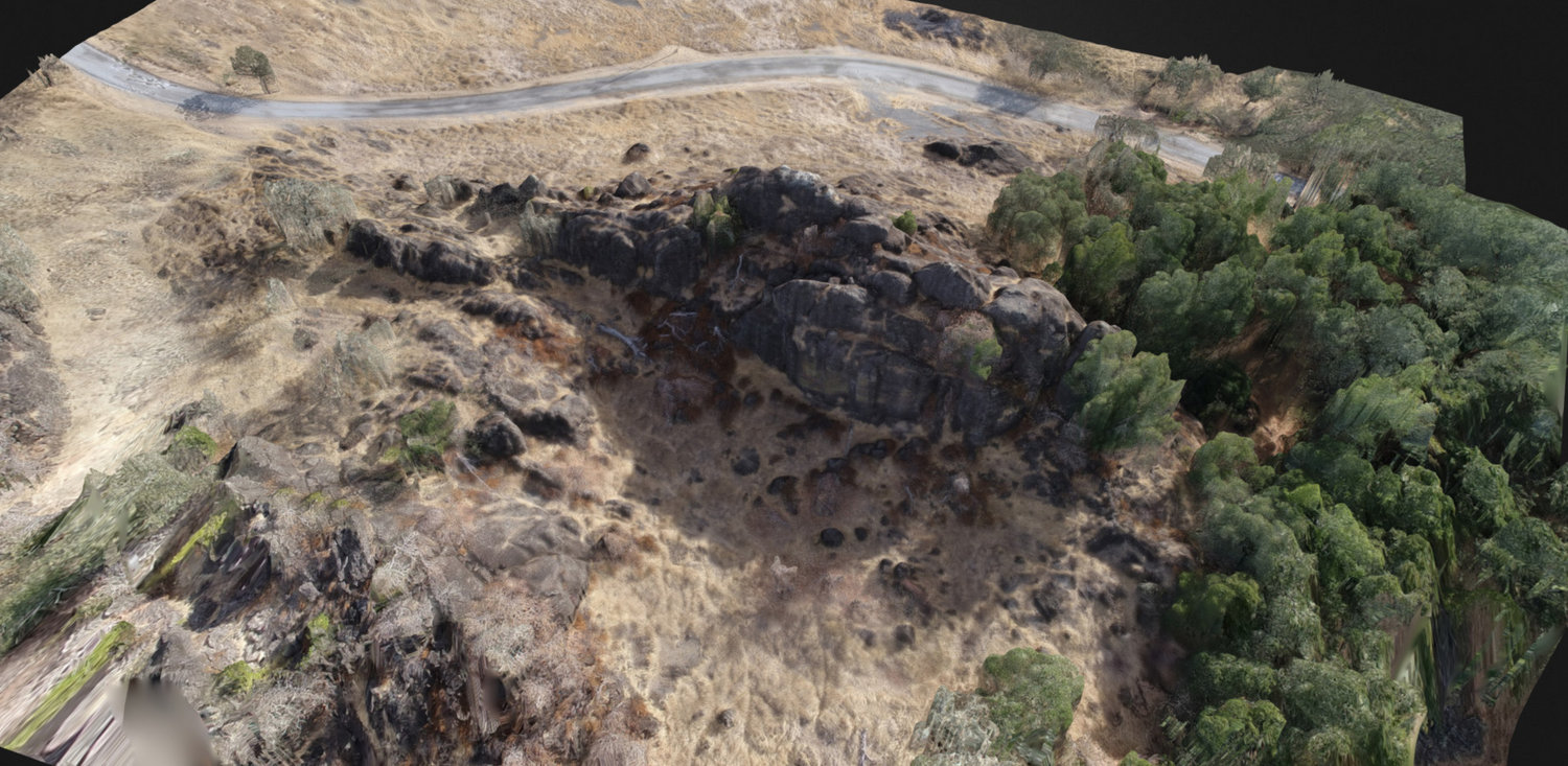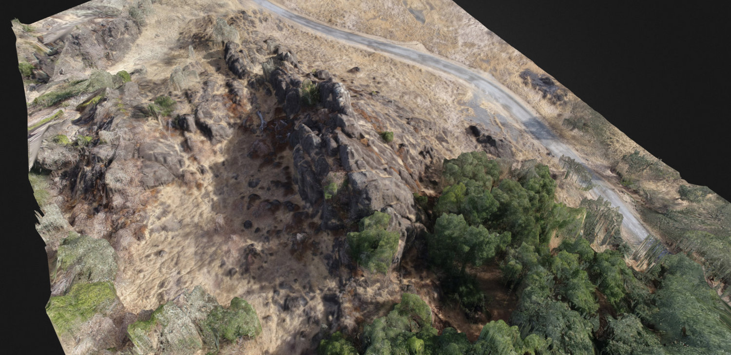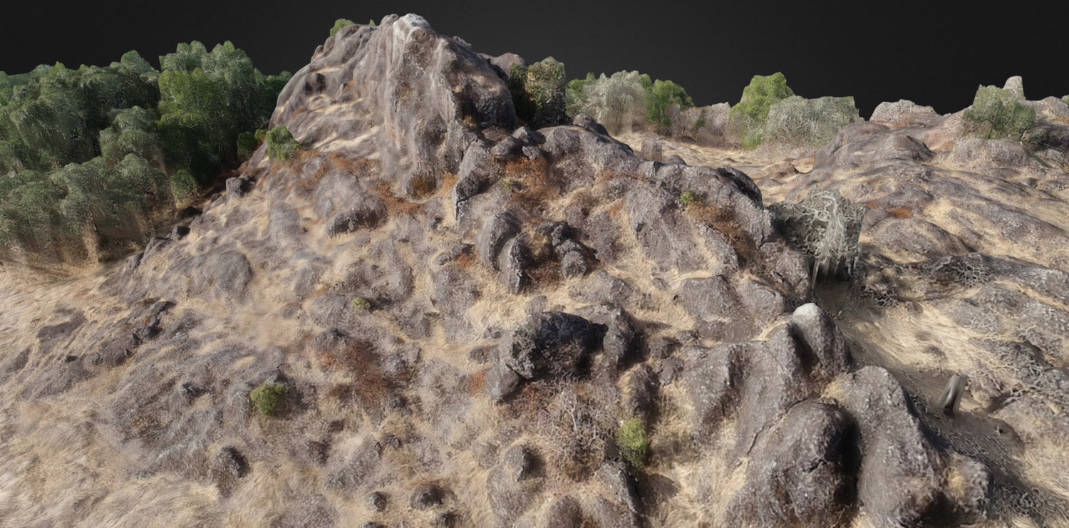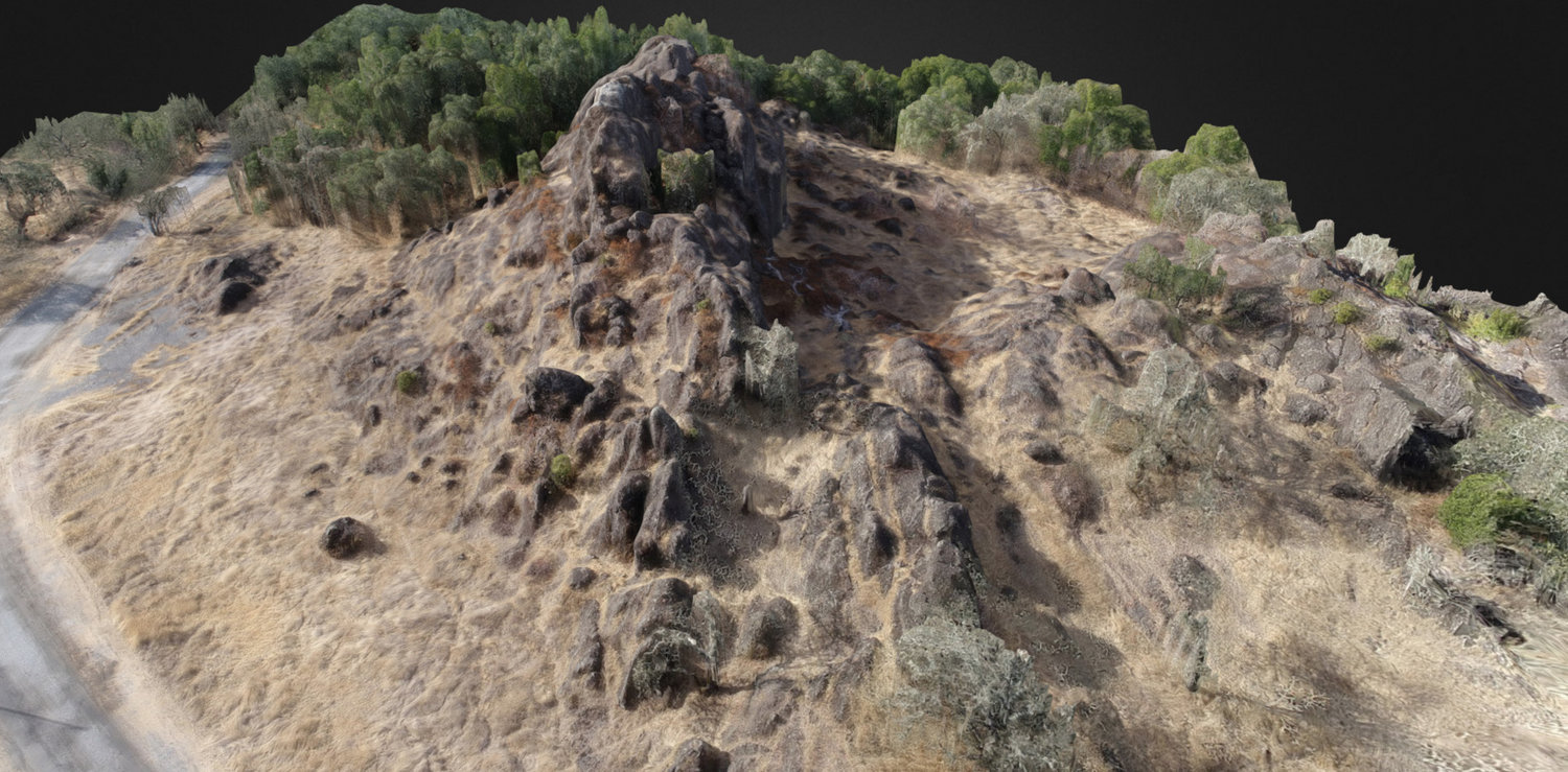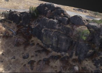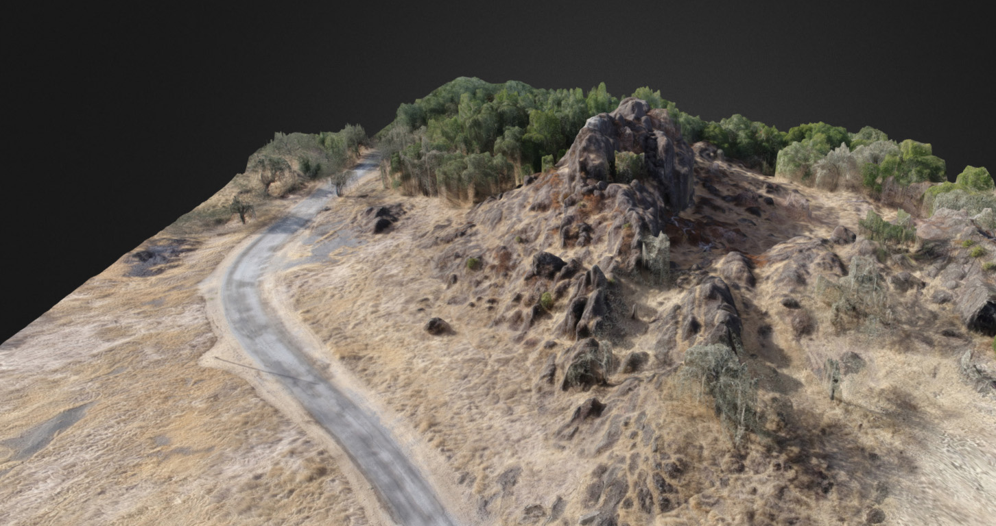Screenshots captured from a 3D virtual model of a rock formation created using aerial imagery from our Phantom 4 Pro. The images are then uploaded to DroneDeploy and turned into a 3D model which can be manipulated in real time, including Zoom, title, and rotate.