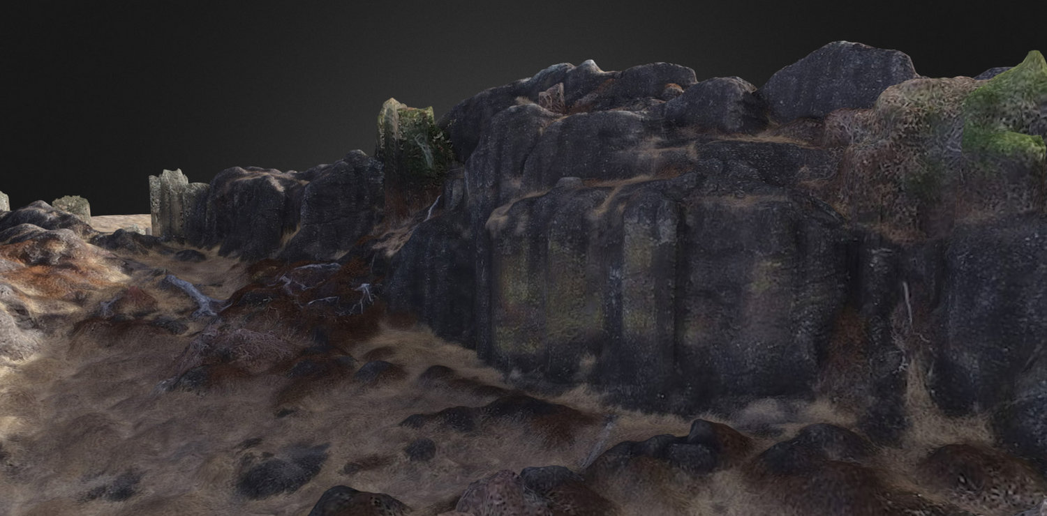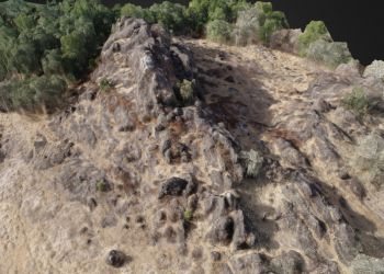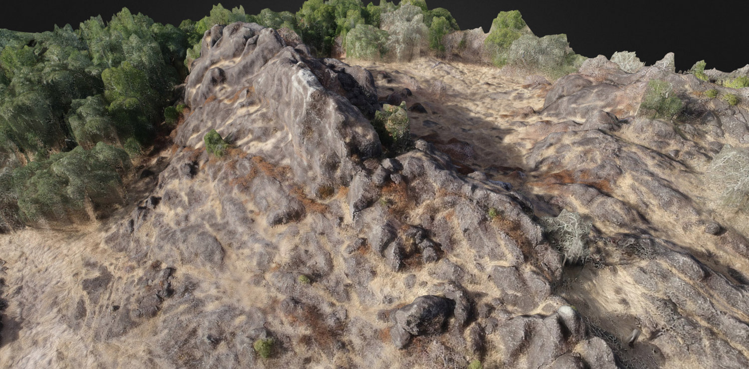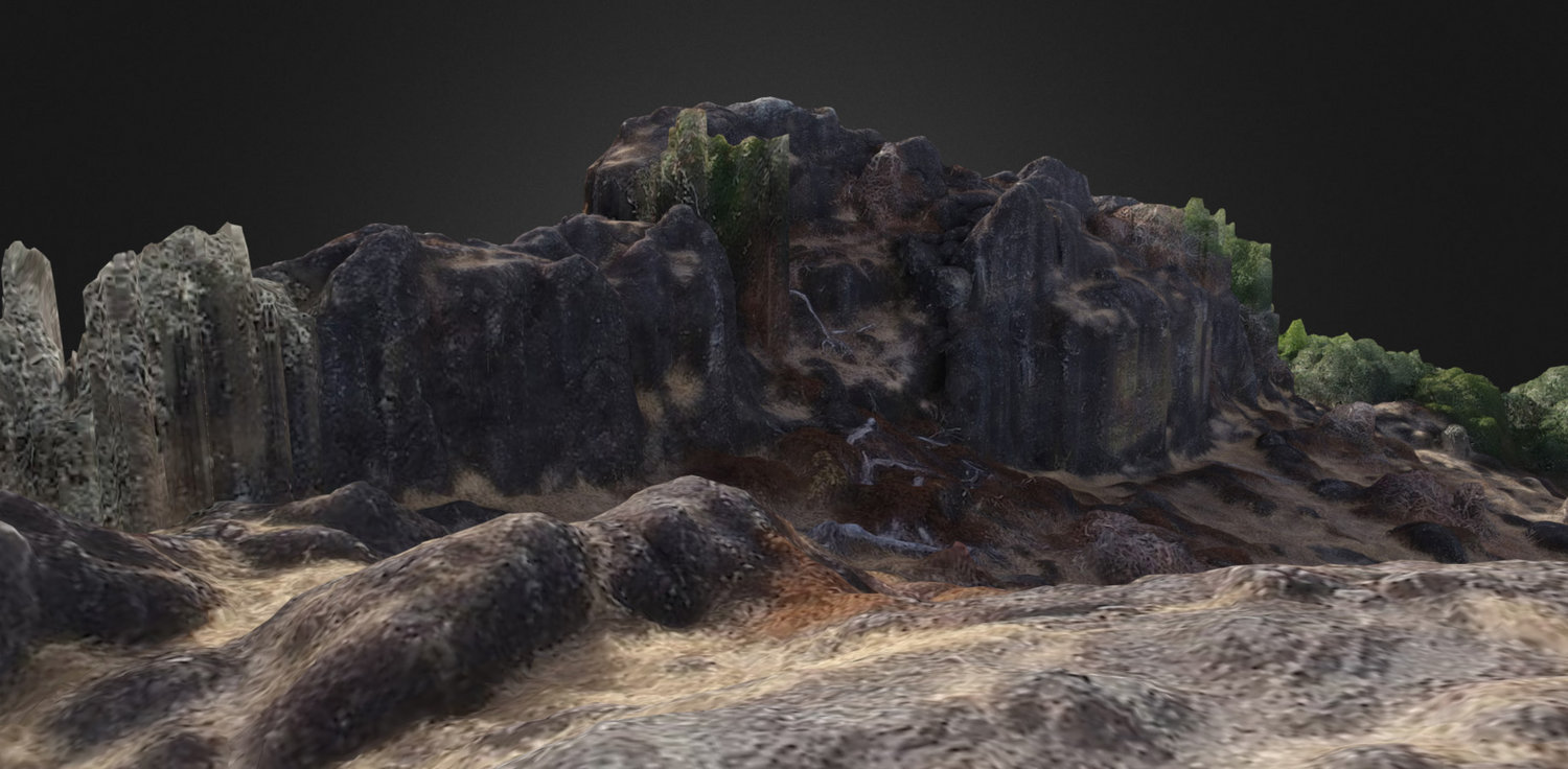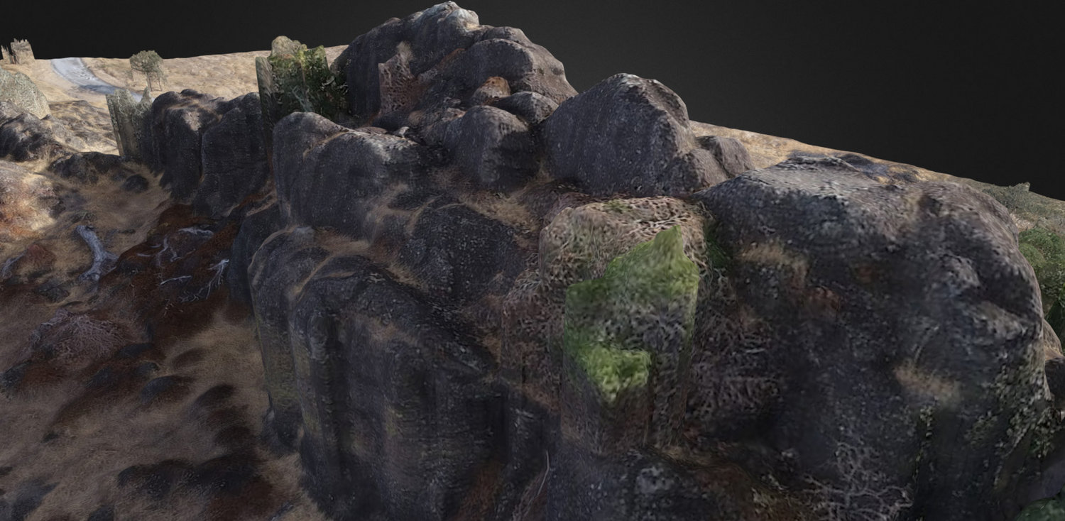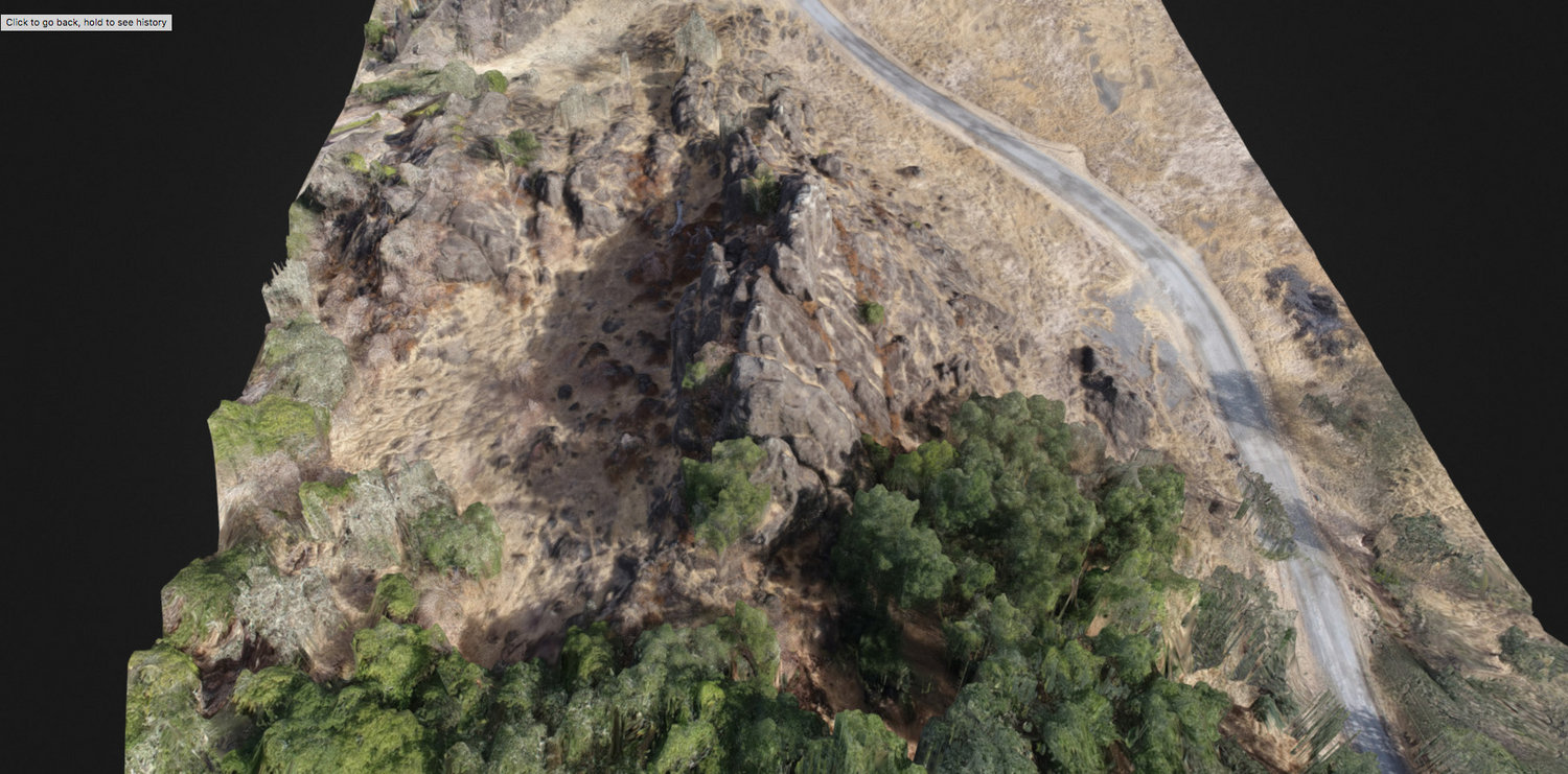 Screenshots captured from a 3D virtual model of a rock formation created using aerial imagery from our Phantom 4 Pro. The images are then uploaded to DroneDeploy and turned into a 3D model which can be manipulated in real time, including Zoom, title, and rotate.