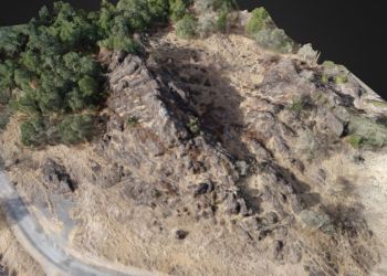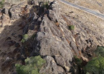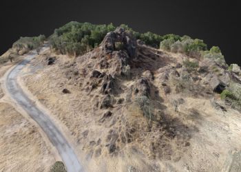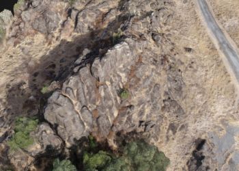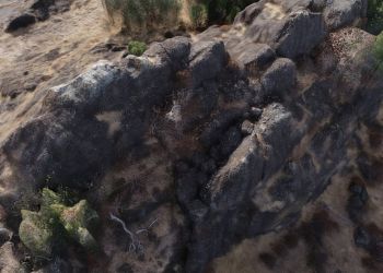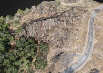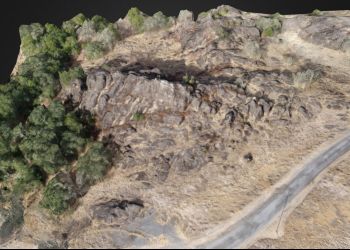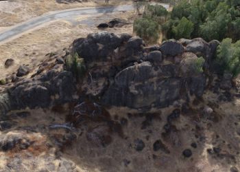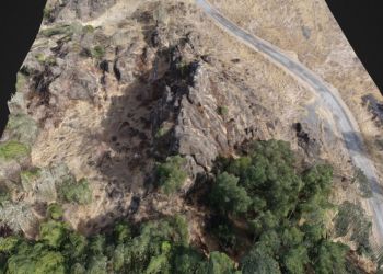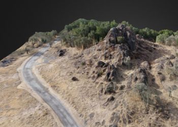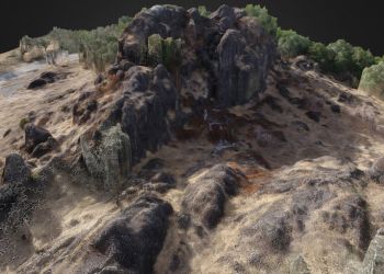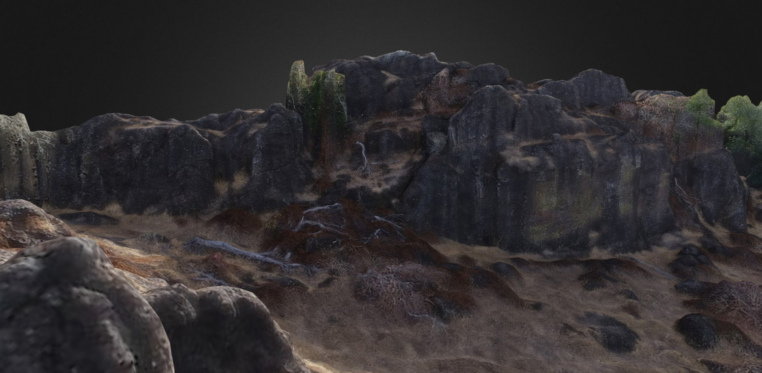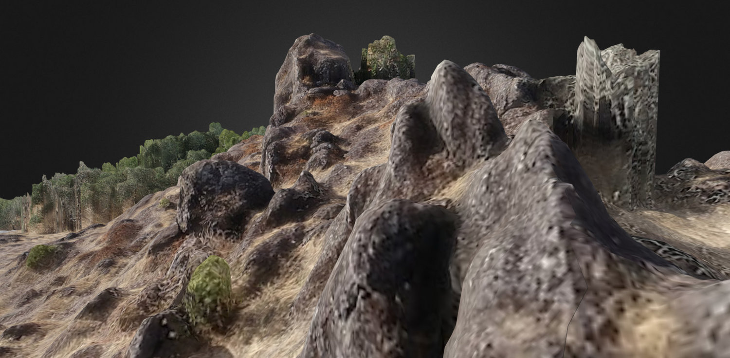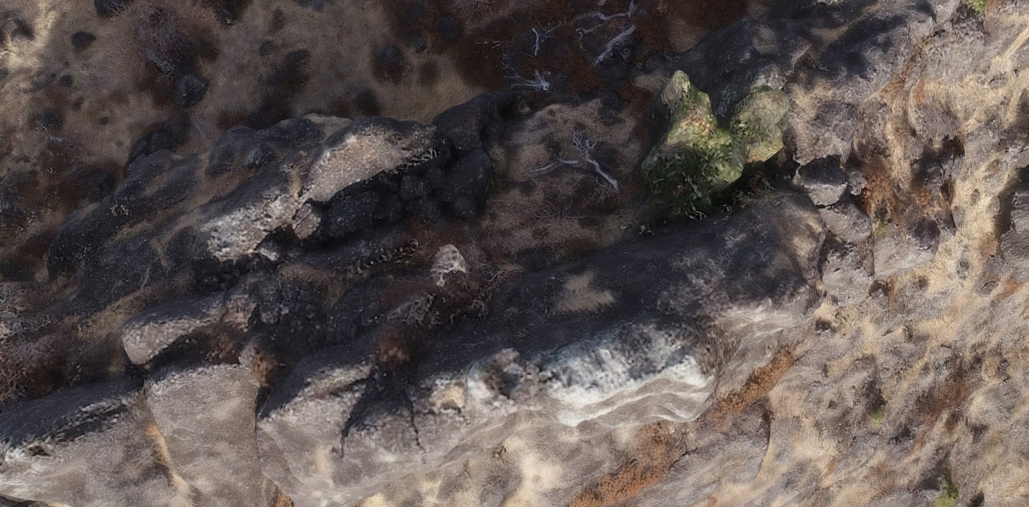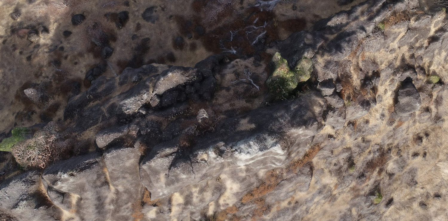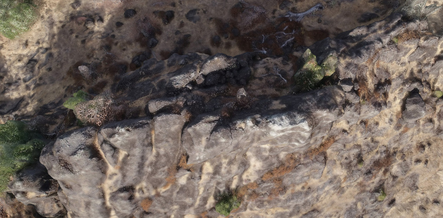 Screenshots captured from a 3D virtual model of a rock formation created using aerial imagery from our Phantom 4 Pro. The images are then uploaded to DroneDeploy and turned into a 3D model which can be manipulated in real time, including Zoom, title, and rotate.